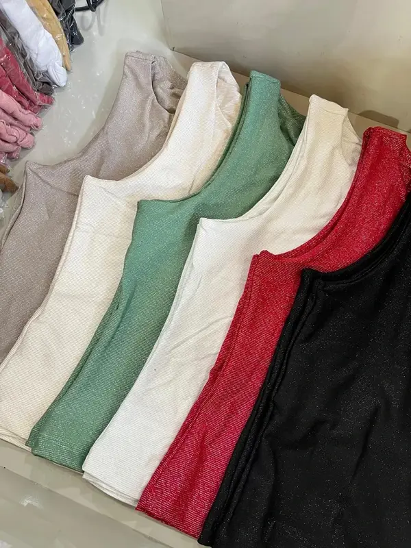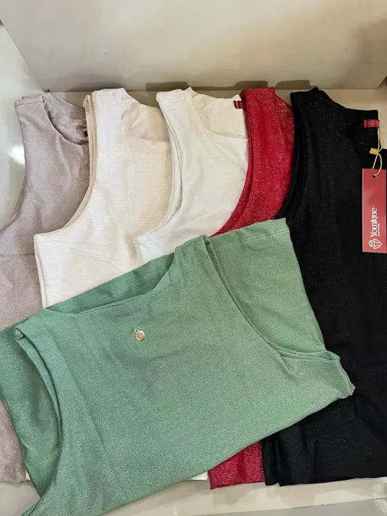 Modelo semi cropped em malha lurex, forrada com plaquinha em metal nas costas. Tamanhos: P, M, G e GG